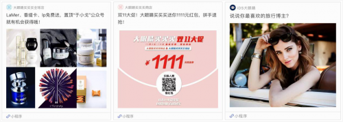 而目前公众号粉丝变现的方式主要是靠营销文章,即通过文章的引导让用户进入微商城或者点击原文链接进行购买。但是据知名的知名的时尚公众号于小戈透露从公众号头条数据来看原文链接的点击率不到1%,购买转化率则更少。接入小程序后通多晒物类、话题类、测试类等小程序卡片的形式,使得小程序的点率直接达到了20%。