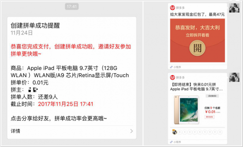 要想减少客户的流失率或者没有客户流失,我们就必须要考虑小程序的类容、消息及传播的联动性。即把整个过程看作一个漏斗,去思考有哪些地方能够进行优化(比如:消息的内容、发送时间、分享的逻辑等),打造全面流畅的营销闭环。这样可以明显提高用户的留存。比如拼多多就利用“活动+分享+消息引导”这个模式优化了整个流程,最终实现了用户留存率提高30%。